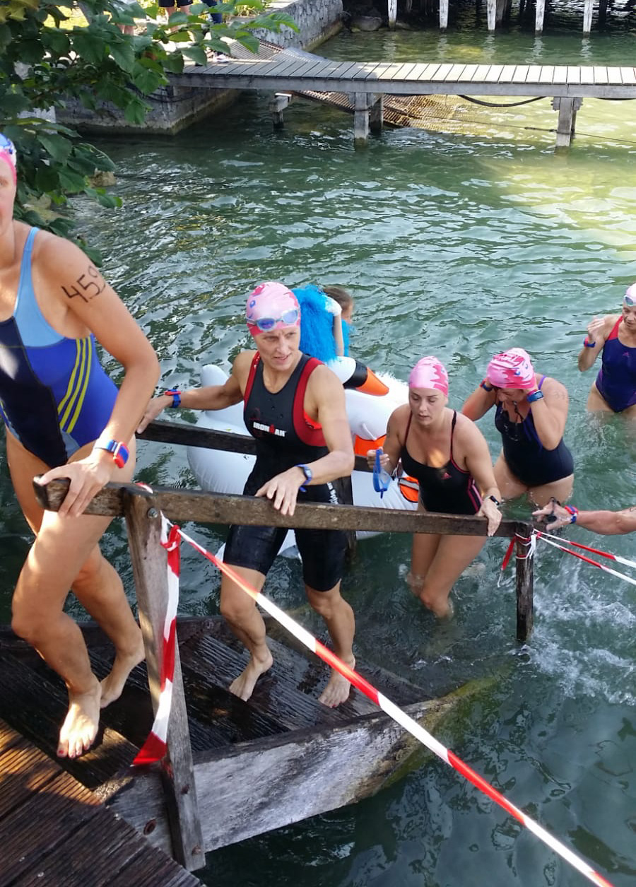 Ca. 500 Teilnehmer stürzen sich in den warmen See...