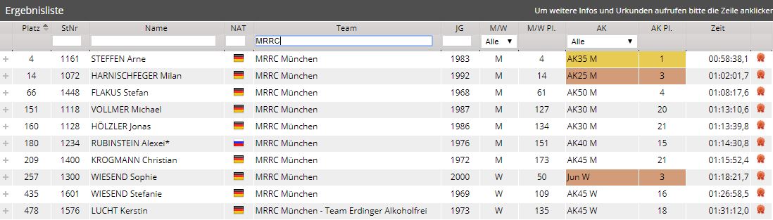 Arne Steffen konnte sich mit einer Zeit von 58:38 den 2. Platz in der AK 35 M erkämpfen und verfehlte nur knapp das Podest in der Gesamtwertung. Milan Harnischfeger holte in der AK 25 M einen dritten Platz mit einer Zeit von 1:02:01. Sophie Wiesend rundete die guten Ergebnisse ab mit Platz 3 bei den Junioren W in einer Zeit von 1:18:21.
