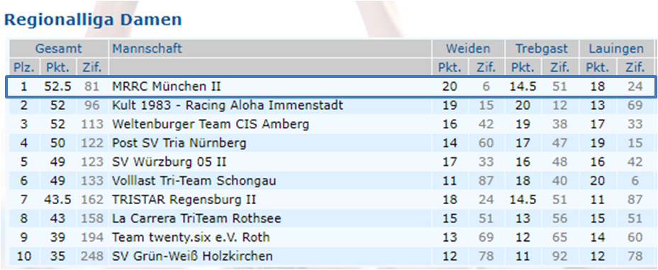 Mit Platz 3 im dritten Rennen der Regionalliga konnten sich unsere Damen II den Platz an der Spitze der Tabelle zurückholen.