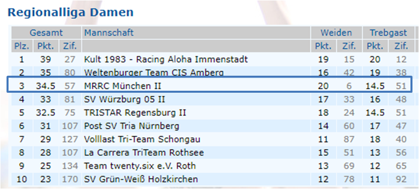 Platz 6 in der Mannschaftswertung für das Damen Team MRRC München II in der Regionalliga beim Triathlon in Trebgast am Wochenende!!