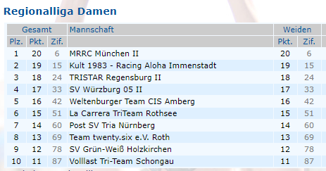 Das kann man einen gelungen Start in die Saison nennen. Nach dem ersten Wettkampf in der Regionalliga stehen unsere Damen auf Platz 1.