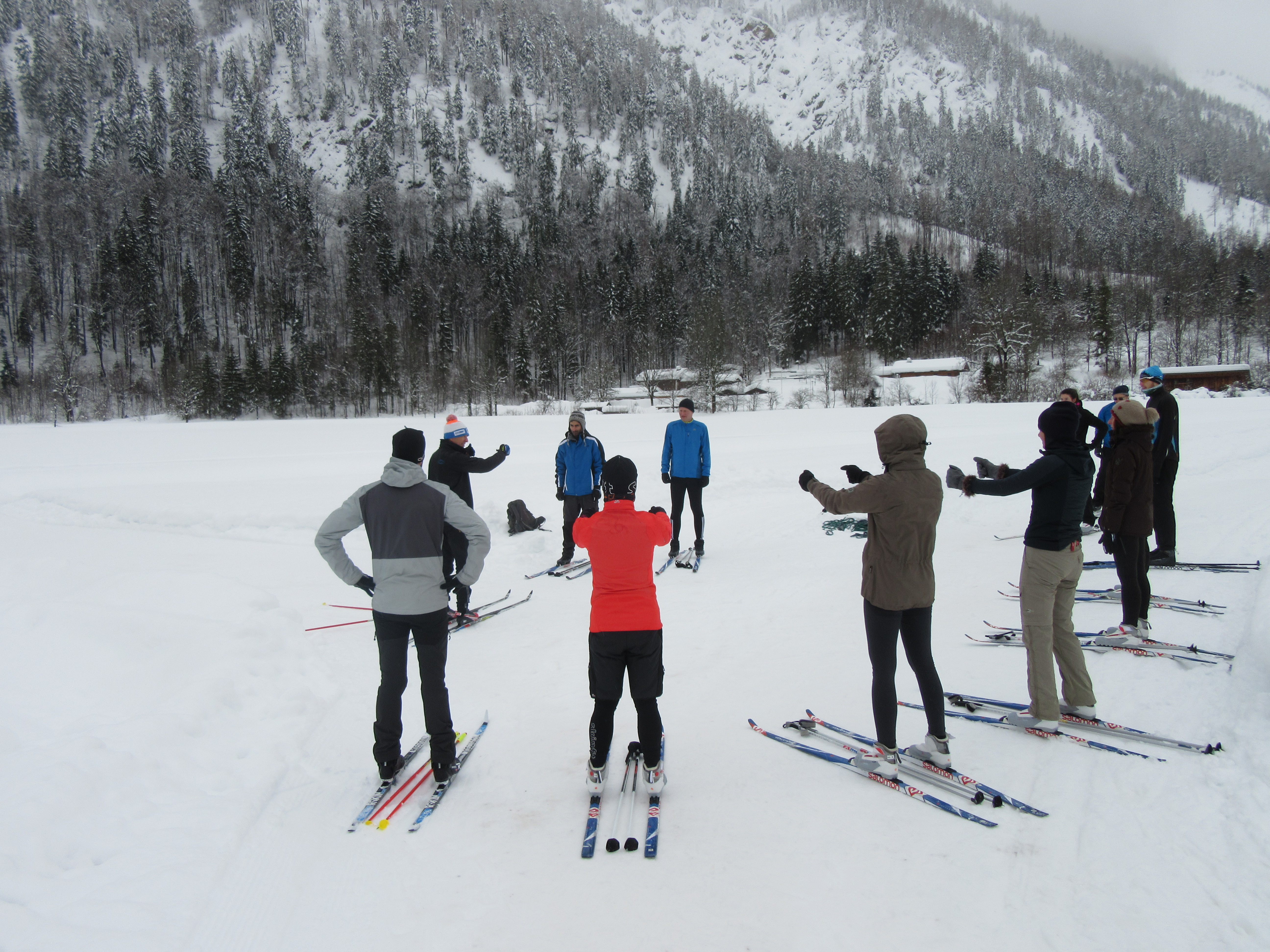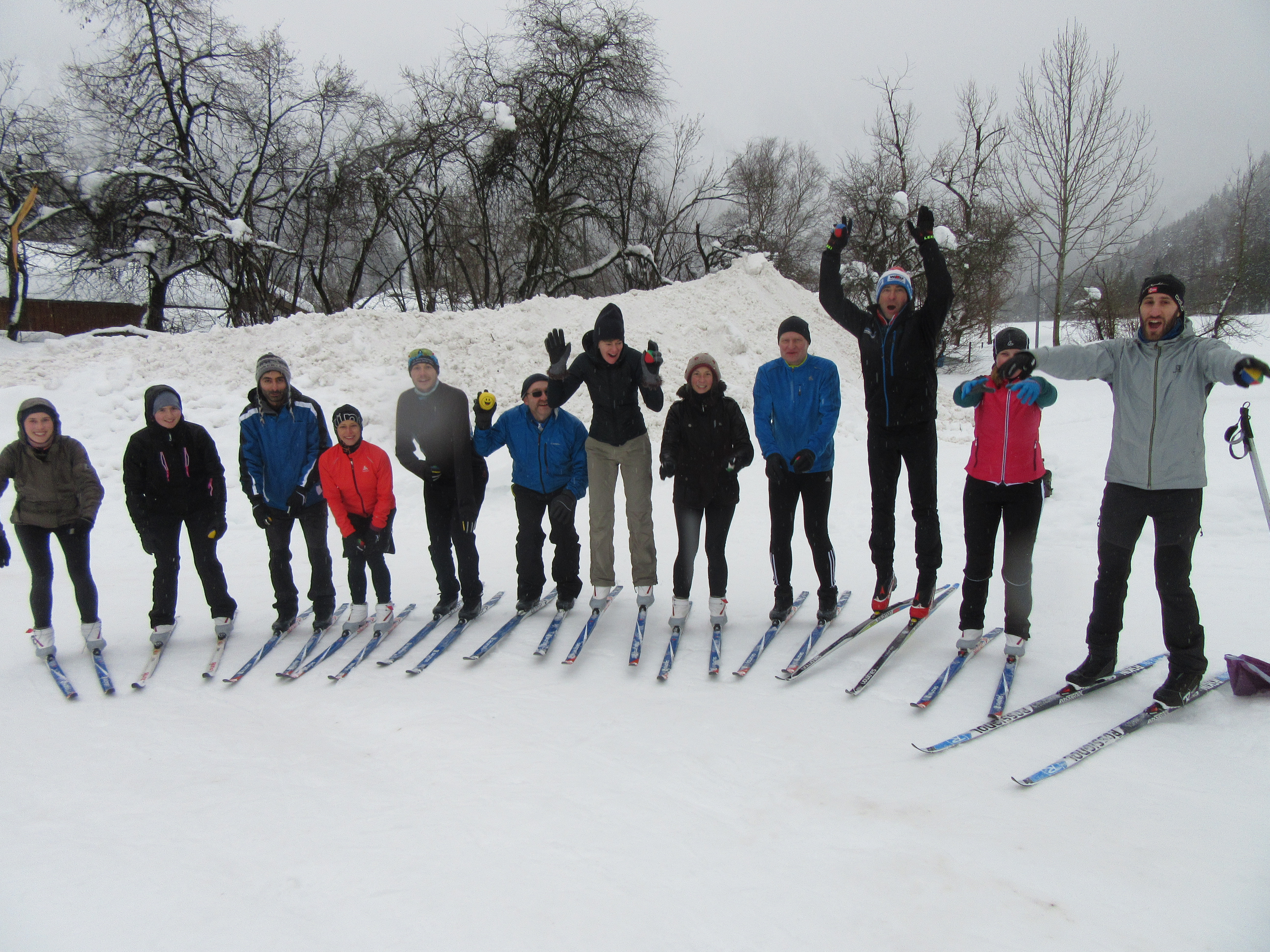In knapp 3 Stunden Crashkurs hat uns unser Trainer Jürgen Wambach die wichtigsten Fähigkeiten des klassischen Langlaufs vermittelt, insbesondere das Gleichgewicht zu halten, Fallübungen, technische Handhabung des Materials etc. Der Kurs war sehr kurzweilig und die Stimmung hervorragend. Auch lobend zu erwähnen sei der Wettergott, der uns wenigstens für die Dauer des Kurses vor allzu harschen Wetterbedingungen verschont hat. Zum Mittagessen hatte Arno bereits einen Tisch in der Sportalm für uns reserviert, wohin wir uns rechtzeitig vor Einsetzen des starken Regens retteten. So konnten wir unseren Langlaufkurs gemütlich ausklingen lassen. Vielen Dank an Dich, Arno, und alle Anderen für die gute Organisation, Pünktlichkeit und gute Stimmung