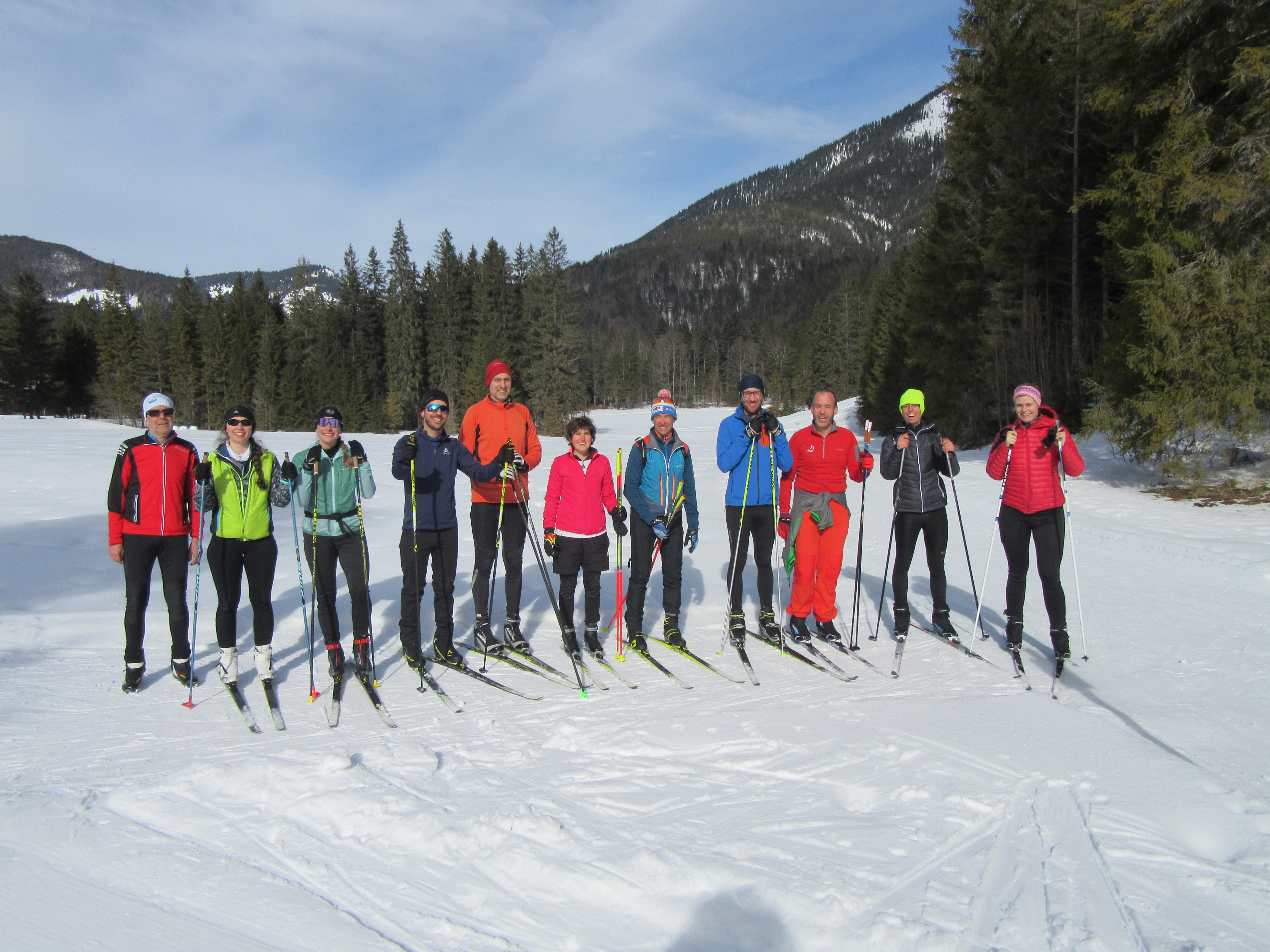Wir hatten einen wundervollen Tag, haben sehr viel gelernt und konnten uns technisch alle einen oder zwei Schritte weit verbessern. Einige sind direkt weiter auf die Loipe um die neuen Fertigkeiten gleich anzuwenden während sich der gemütliche Teil unserer Gruppe an der Sportalm auf ein Stück Kuchen wiederfand. Ein großes Dankeschön an Arno für die Organisation und Jürgen, der mit seinem fachkundigen Blick uns alle ein großes Stück voran gebracht hat.